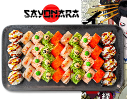 Пять ролов с лососем в сочетании с авокадо, огурцом, луком и сливочным сыром.