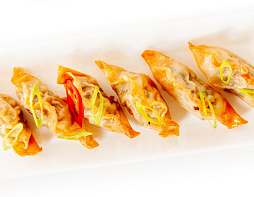 Японские пельмени из тонкого теста в форме полумесяца с длинными ушками начинкой на выбор
