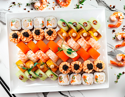 Филадельфия фреш маки, Акита маки, Сяке авокадо маки, Кунсей Сяке маки, Нигири Эби, Нигири Магуро, Н...