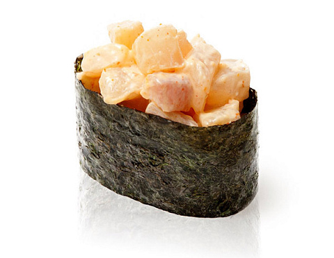 Копченый лосось, темпура, лосось жареный в соусе Терияки, майонез.