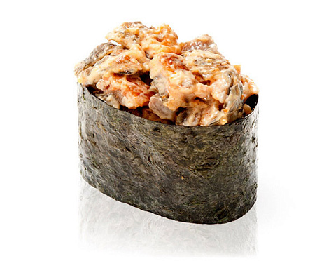 Копченый лосось, темпура, лосось жареный в соусе Терияки, майонез.