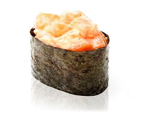 Копченый лосось, темпура, лосось жареный в соусе Терияки, майонез.