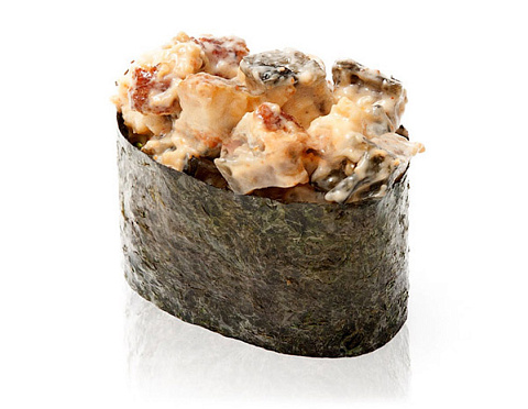 Копченый лосось, темпура, лосось жареный в соусе Терияки, майонез.