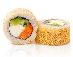 Лосось, сливочный сыр, авокадо, огурец, кунжут белый